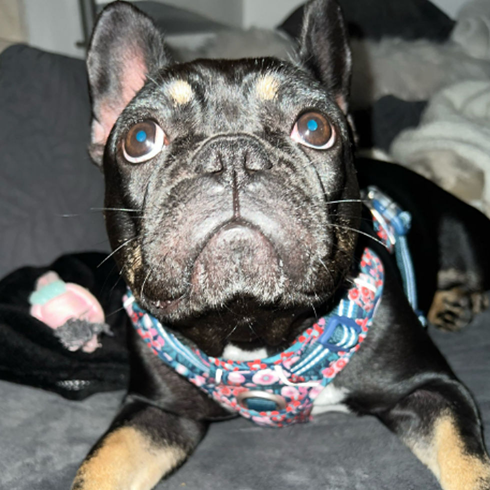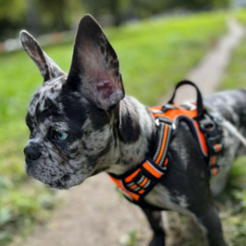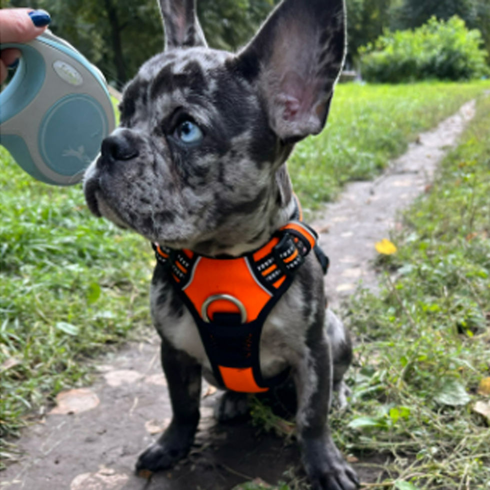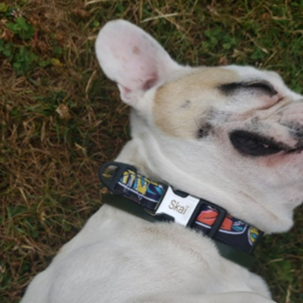 Skaii o iubeste pur si simplu, marimea M ii vine foarte bine, este un buldog de 1 an.