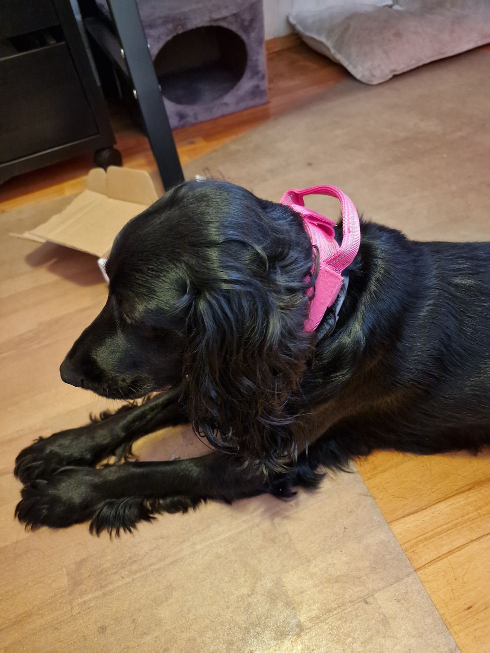 Buna! Eu sunt Marisa și mami mi-a luat zgarduța de big bois de la voi pentru ca sunt un cocker foarte energic și trebuie sa ma prindă repede:))) e super confortabila și m-am obișnuit imediat cu ea. Mulțumesc echipei pentru un produs asa frumos și util! Pupici băloși!