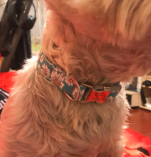 Totul este super! Pentru catelul meu Westie am luat marimea M si se potriveste perfect. Catarama este rezistenta. Potrivita chiar și pentru un câine mai mare. Sunt multumita si eu si câinele.