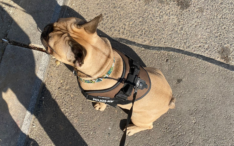 - Inel în formă de D, cusut în zgardă, pentru atașarea lesei.